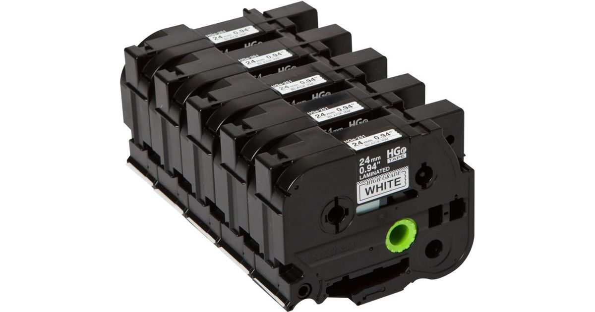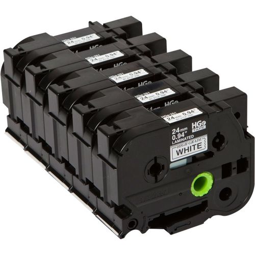 Brother HGE-251V5, 5 tk, HGe, Must valgel taustal, P-touch 9500PC, 9700PC, 9800PCN, RL700S, 8 m, 2,4 cm