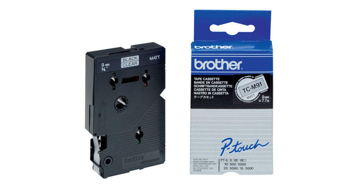 Brother TC-M91, 1 tk, TC, Must läbipaistval taustal, Brother PT2000, PT3000, PT500, PT5000, PT8E, 9 mm, 7,7 m