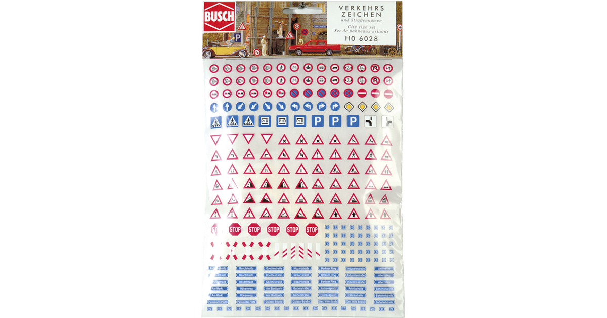 Busch 6028 H0 Set Road Sign, Street Names, House Numbers Assembly Kit