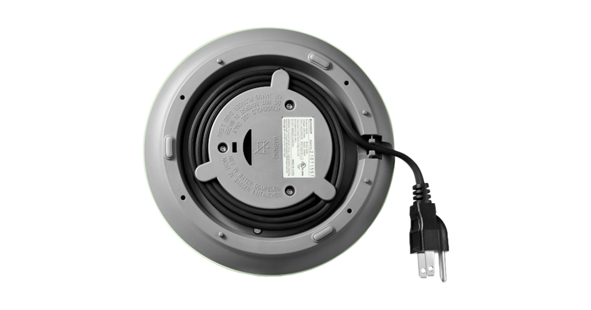 Equipped with a 90cm long power cord and a base featuring a storage tray, this appliance offers both flexibility and convenience. The extended cord ensures versatile placement, while the storage tray simplifies movement and storage, enhancing overall usability.