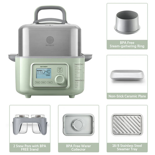 BUYDEEM Multi function Digital Food Steamer, model G564, color Cozy Greenish, EU