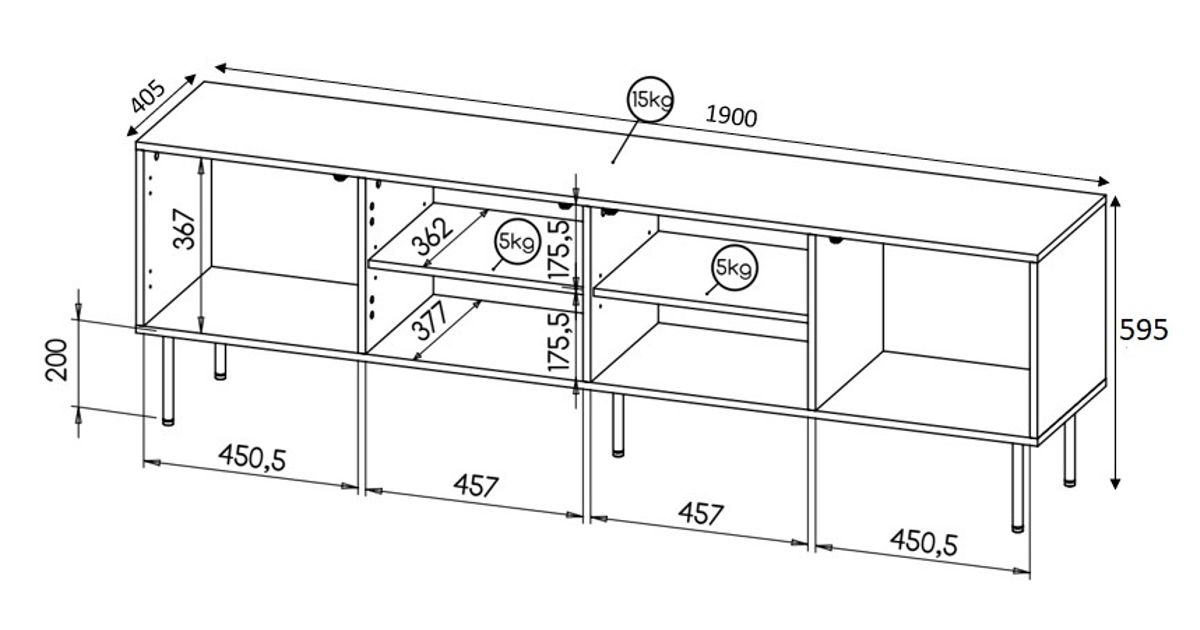 Cama HOLE RTV190 CZ telerilaud ja meelelahutuskeskus 2 riiulid
