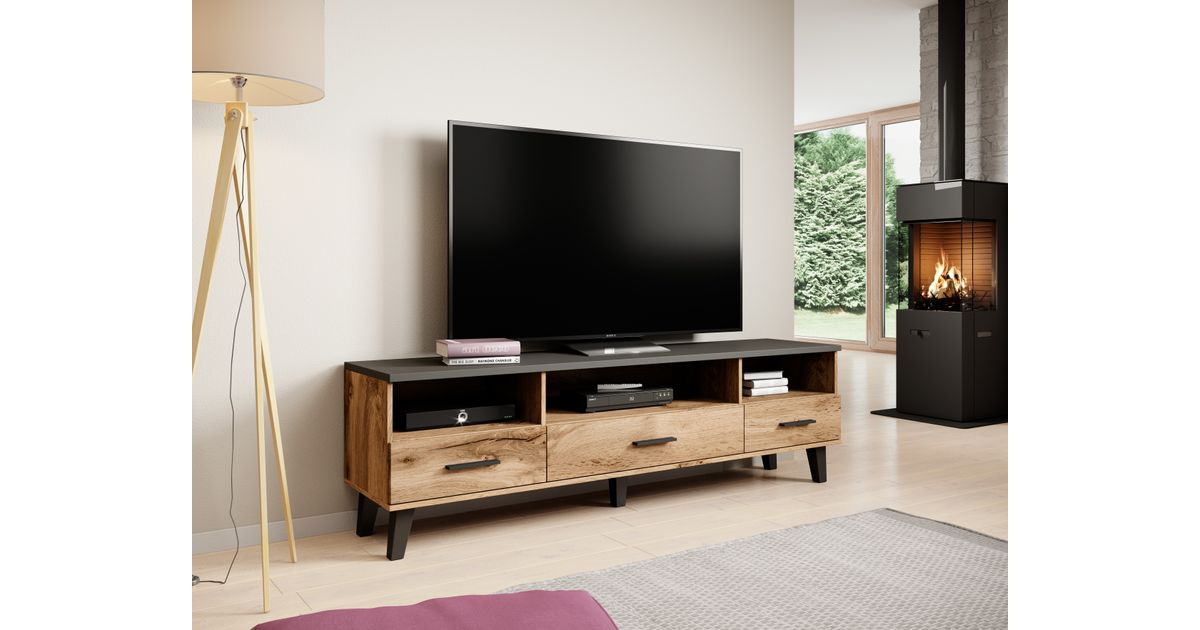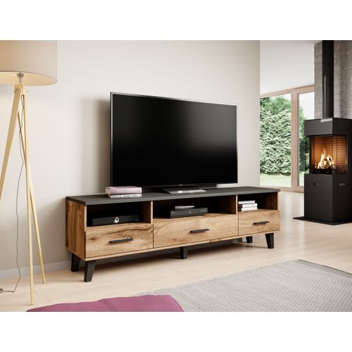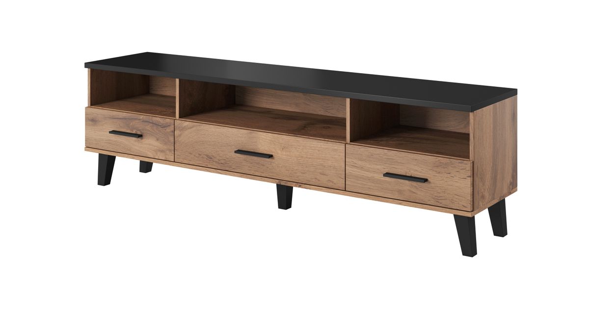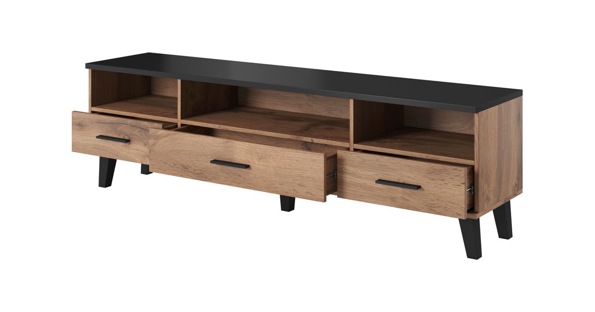 Cama LOTTA TV18 3S3K WOT+B, Must, Puitlaastplaat, Wotan oak, Puitlaastplaat, 3 sahtel(id), 3 riiulid