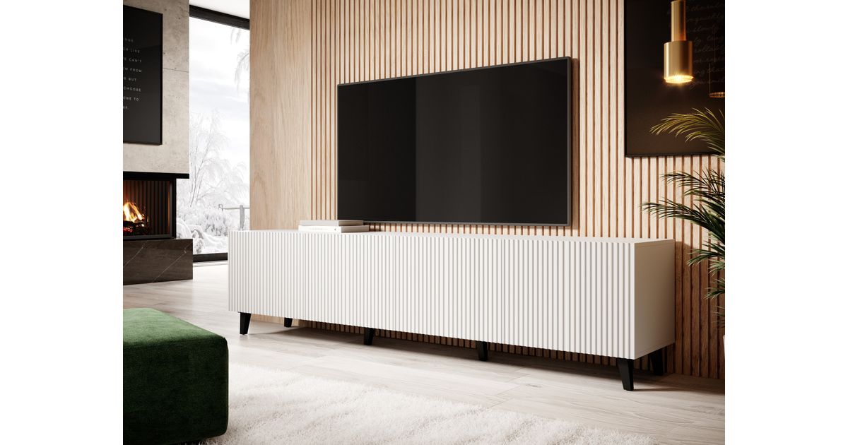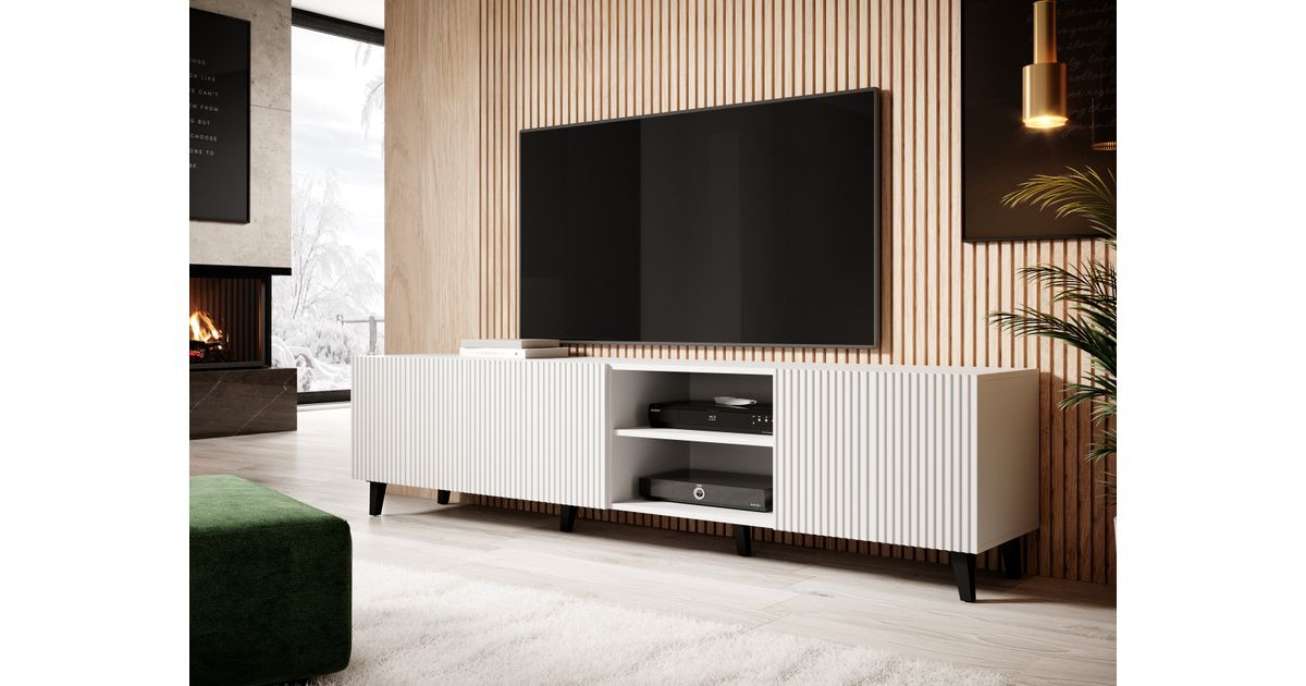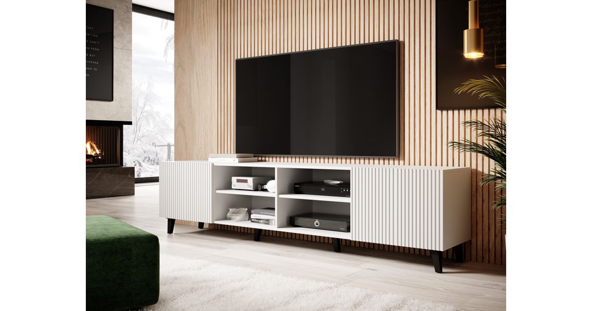 Cama PAFOS RTV200 BI, Valge, Keskmise tihedusega puitkiudplaat (MDF), Valge, Keskmise tihedusega puitlaastplaat (MDF), 4 riiulid, Matt