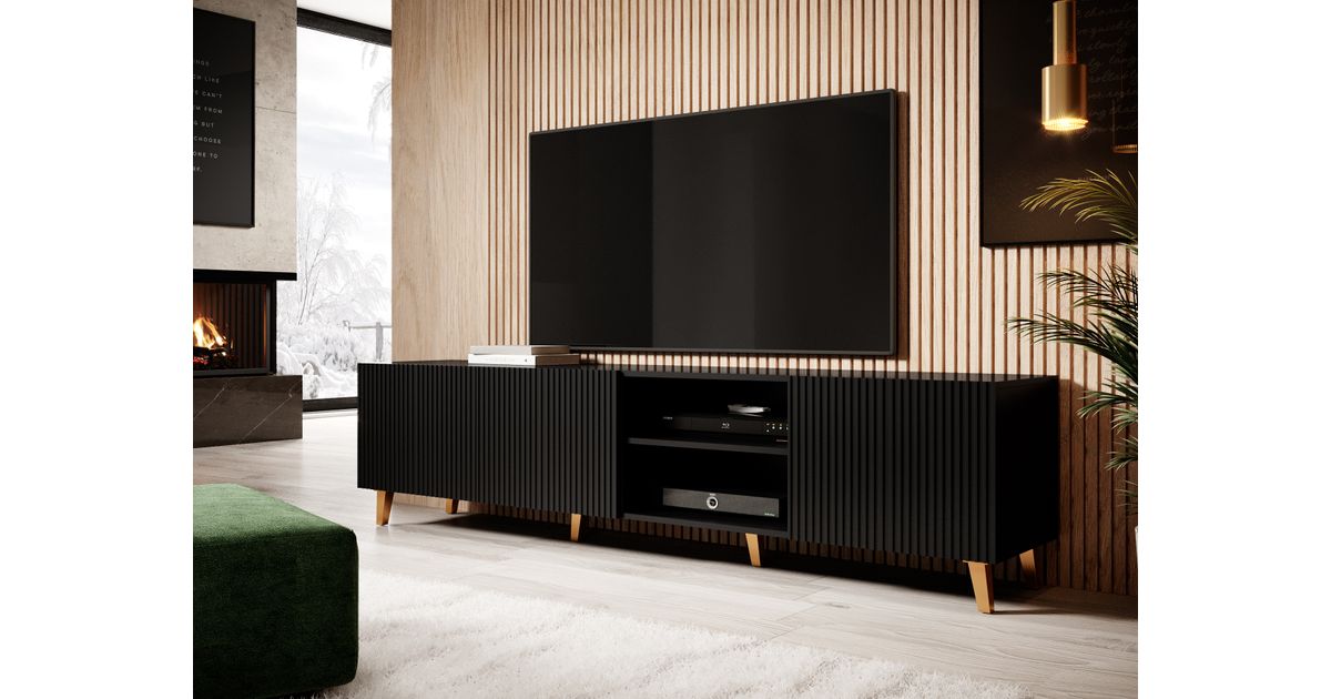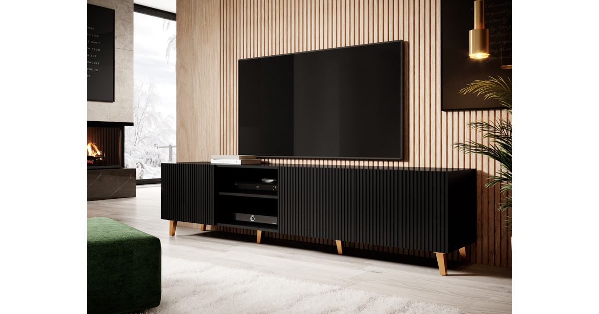 Cama PAFOS RTV200 CZ, Must, Keskmise tihedusega puitkiudplaat (MDF), Must, Keskmise tihedusega puitlaastplaat (MDF), 4 riiulid, Matt