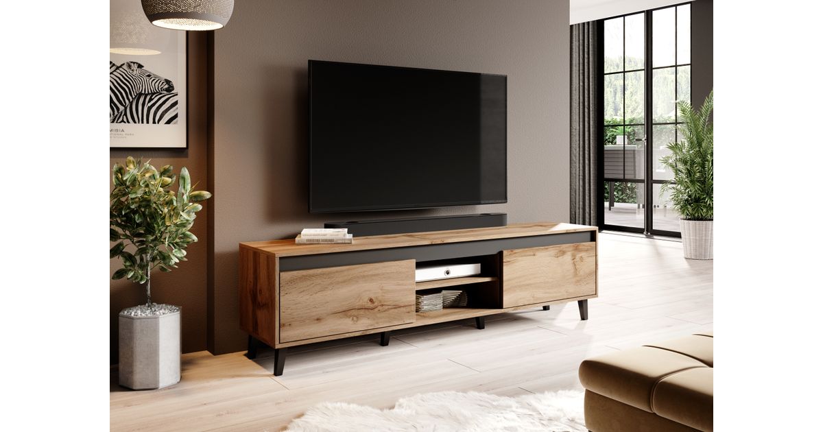 Cama RTV NORD II, Puitlaastplaat, Wotan oak, Puitlaastplaat, 2 riiulid, Laminaat, Matt