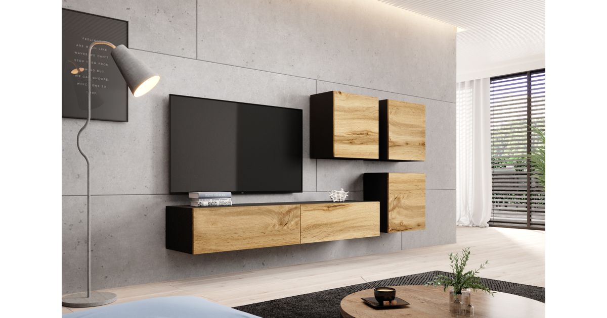 Cama RTV VIGO180 C/DW, Must, Puitlaastplaat, Must, Puitlaastplaat, 2 riiulid, Laminaat