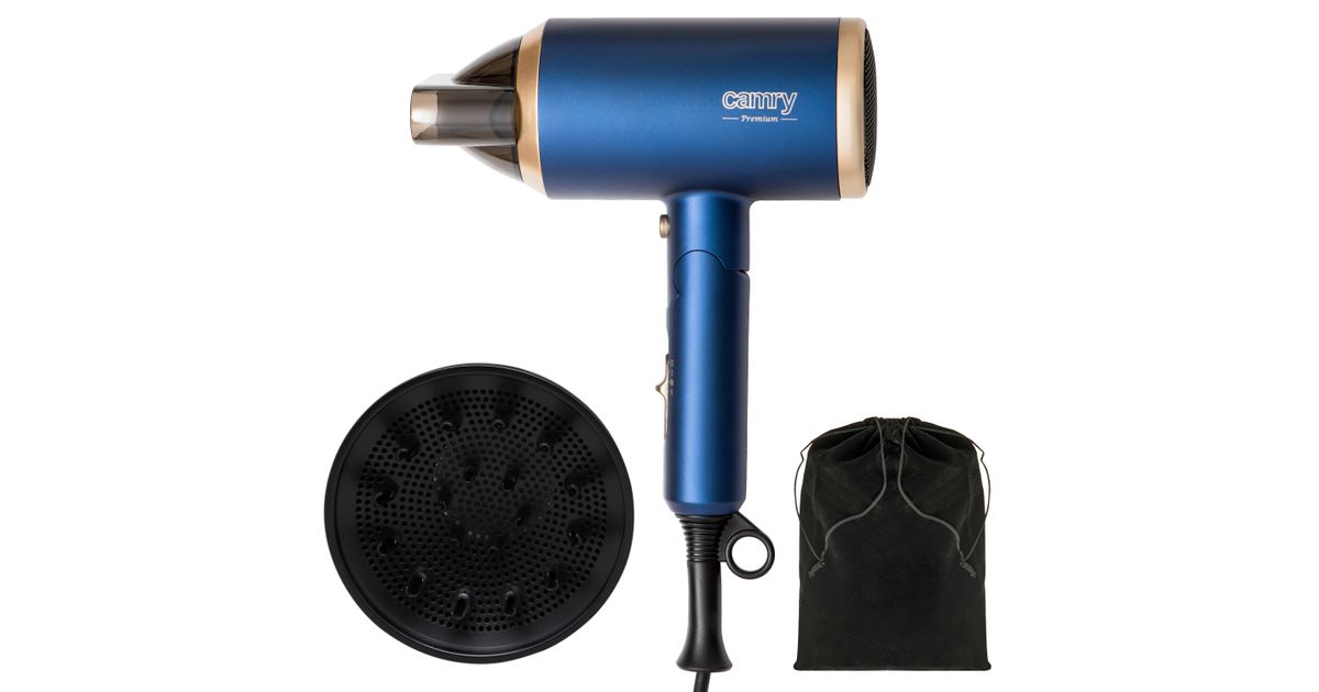 • Camry | Hair Dryer | CR 2268 | 1800 W | Number of temperature settings 2 | Ionic function | Diffuser nozzle | Blue/Gold