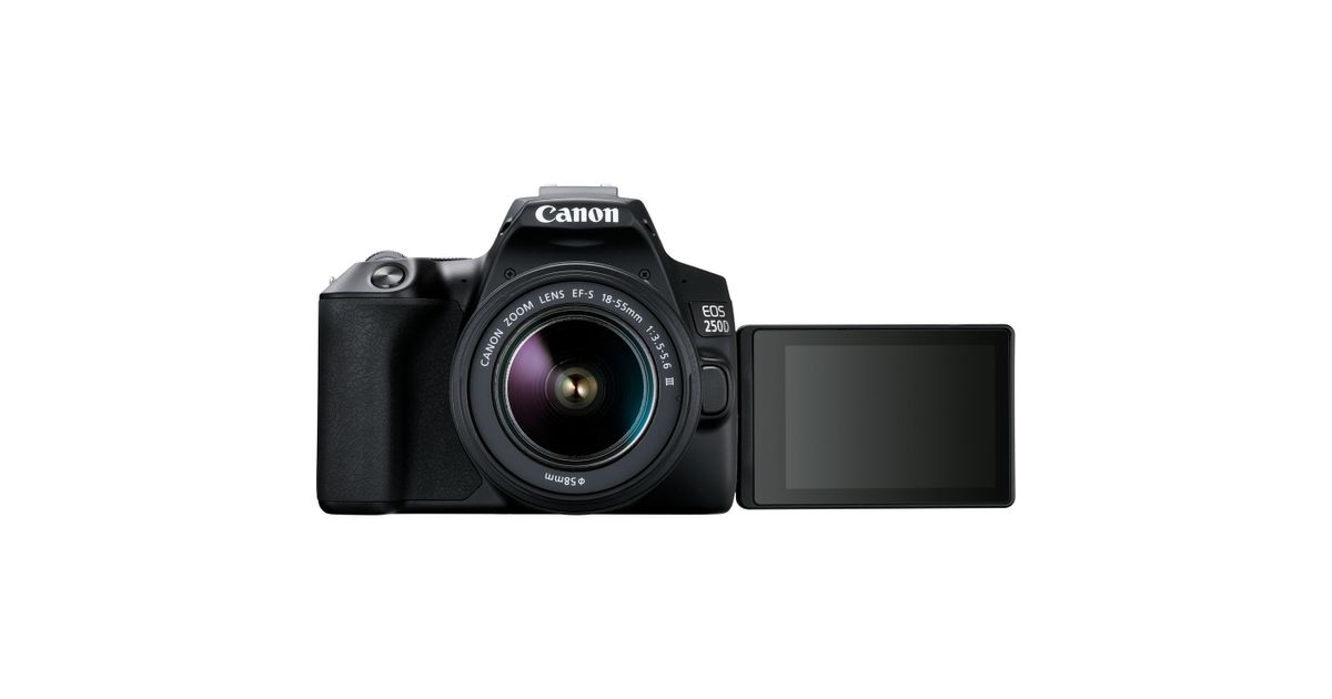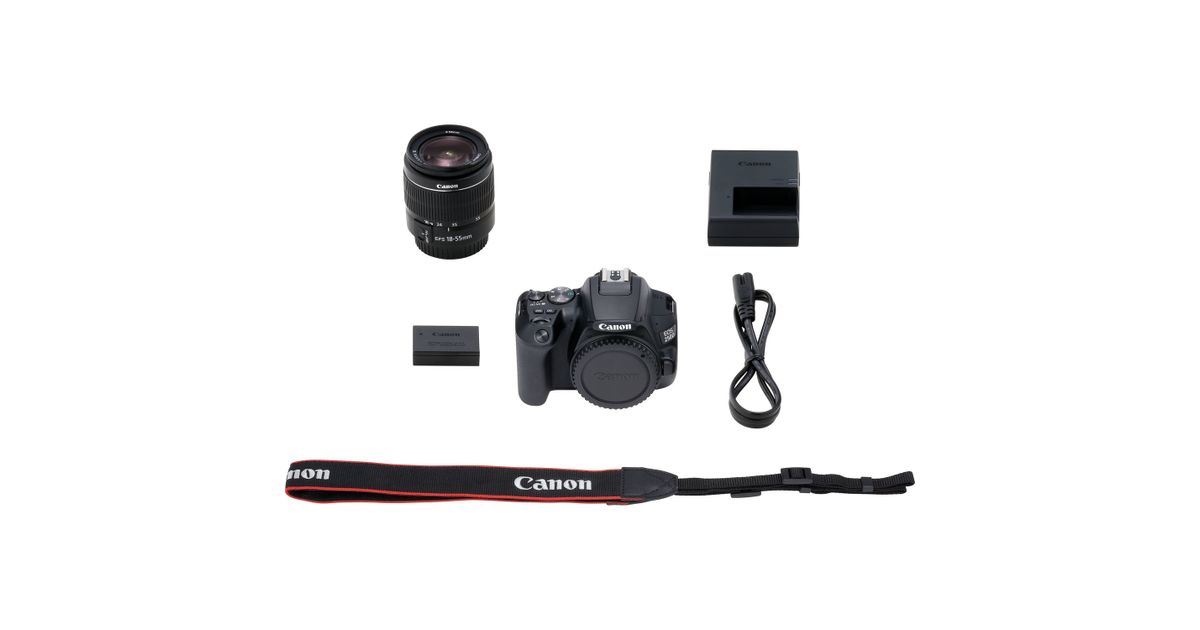 Canon EOS 250D + EF-S 18-55mm f/3.5-5.6 III, 24,1 MP, 6000 x 4000 pikslit, CMOS, 4K Ultra HD, Puutetundlik ekraan, Must