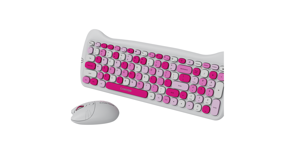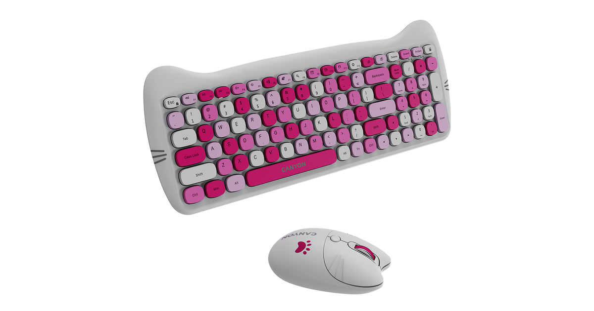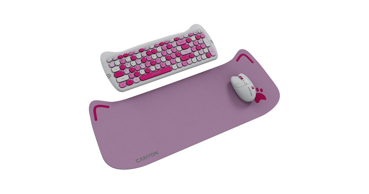 Embrace the purr-fect blend of wireless functionality with the Canyon Kitty Edition keyboard & mouse set. This 2.4 GHz wireless combo is adorned in a delightful black and violet color scheme that's sure to add a touch of whimsy to your workspace.