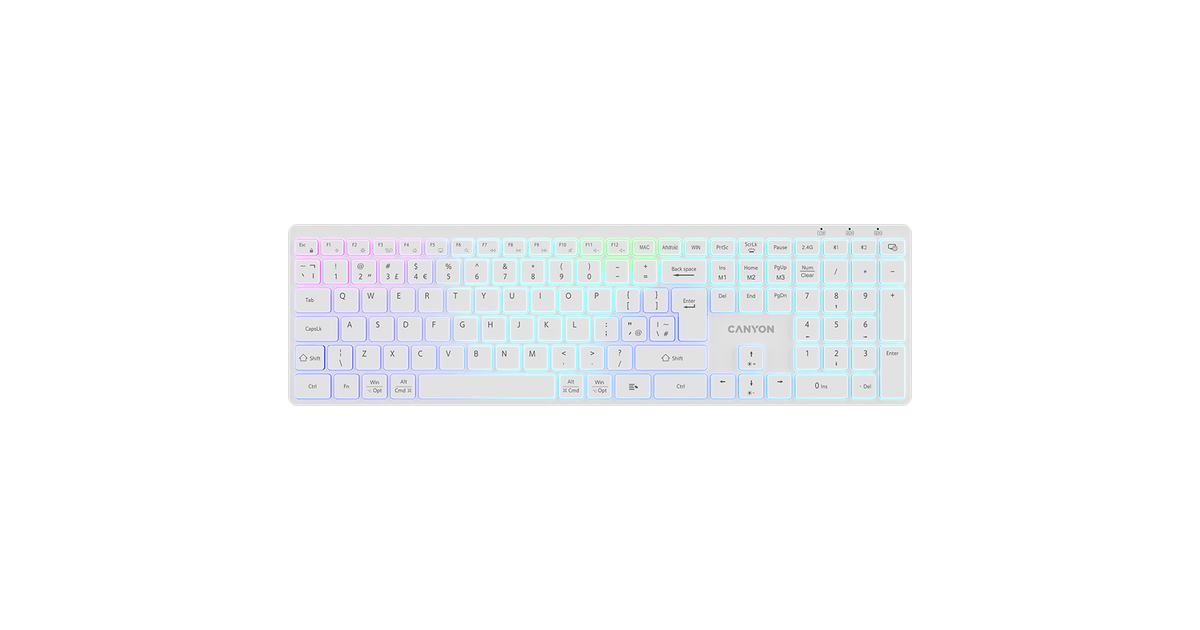 CANYON keyboard HKB-W11 UK/US RGB Dual Mode Wireless White