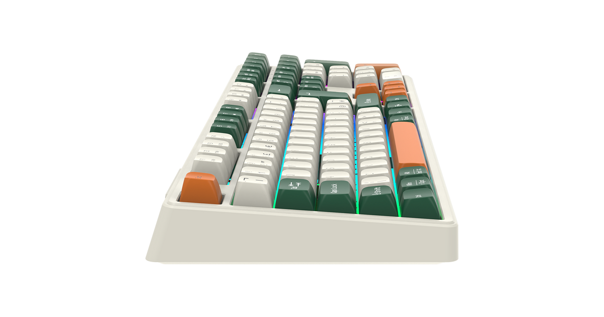 Crafted in a sleek, minimalist manner with a fun colorful finish, this keyboard is equally appealing and functional. It comes in a stylish green & orange design, which really adds to any gaming setup. Its whisper-quiet brown switches provide one-of-a-kind haptic feedback and produce less sound than any other gaming switches. Elevate your gaming aesthetic without compromising performance — you're safe from accidentally pushing the wrong button.