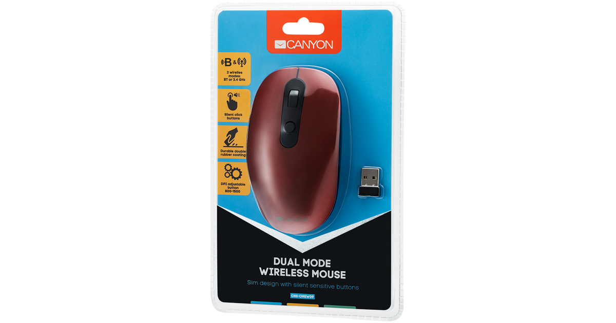 Canyon MW-9, Parempoolne, Optiline, RF juhtmeta + Bluetooth, 1600 DPI, Punane