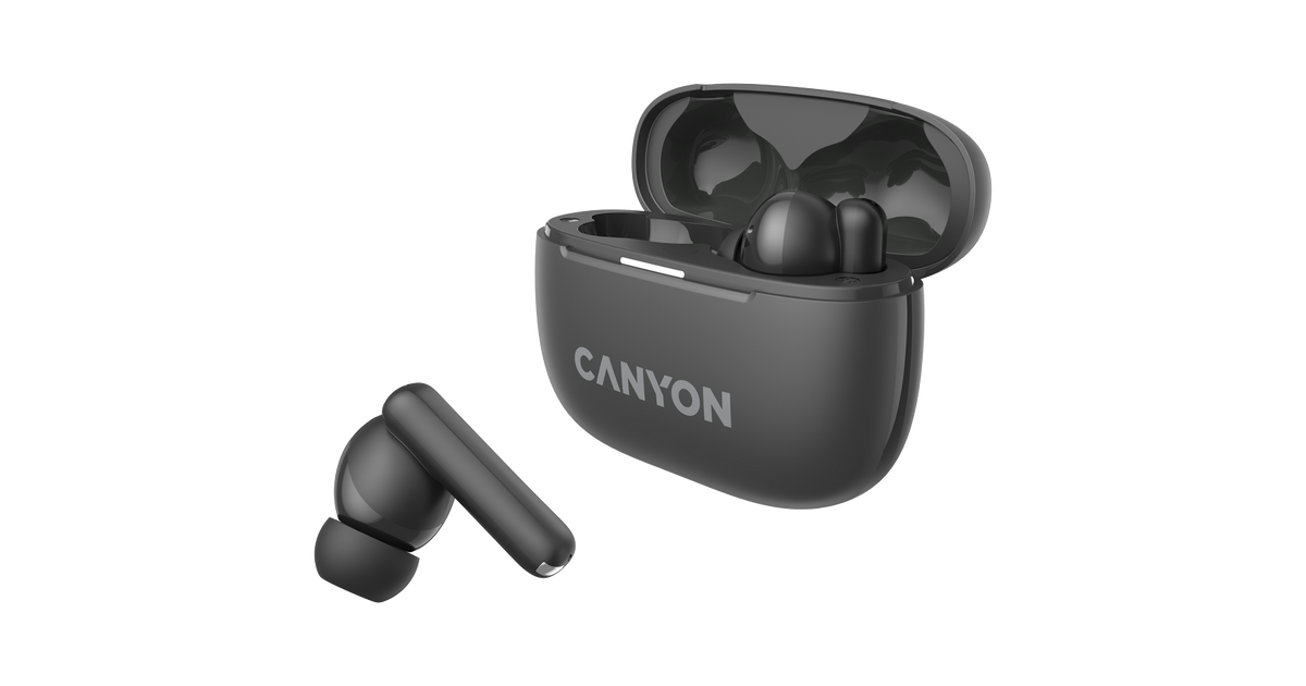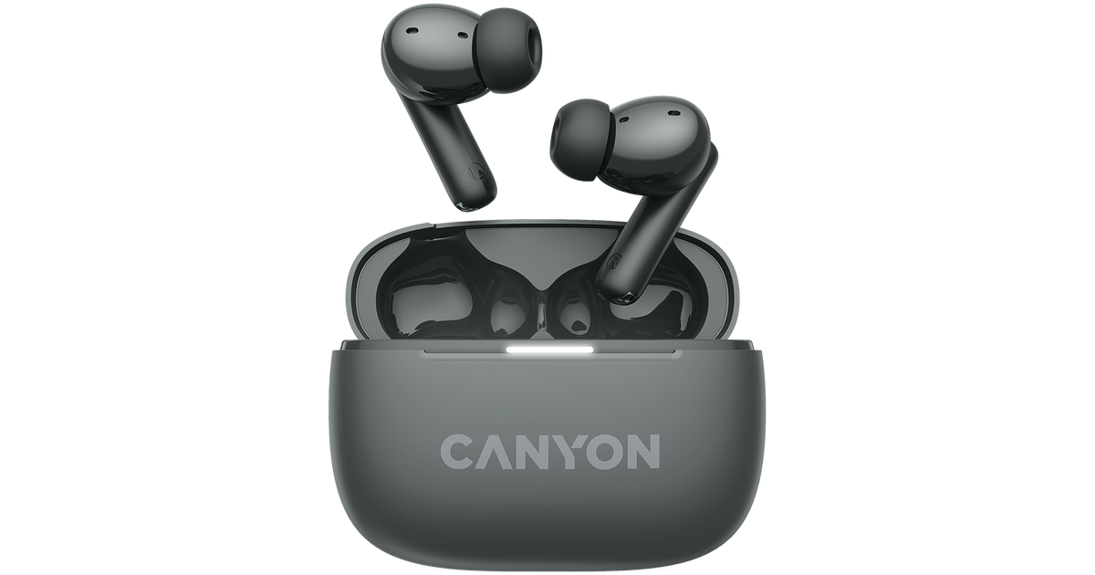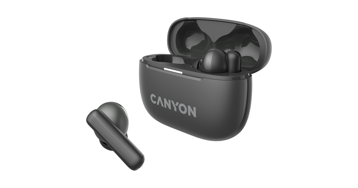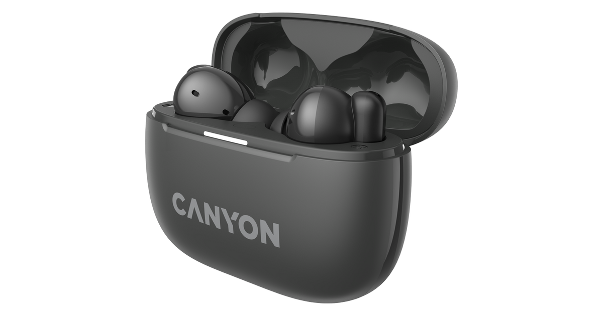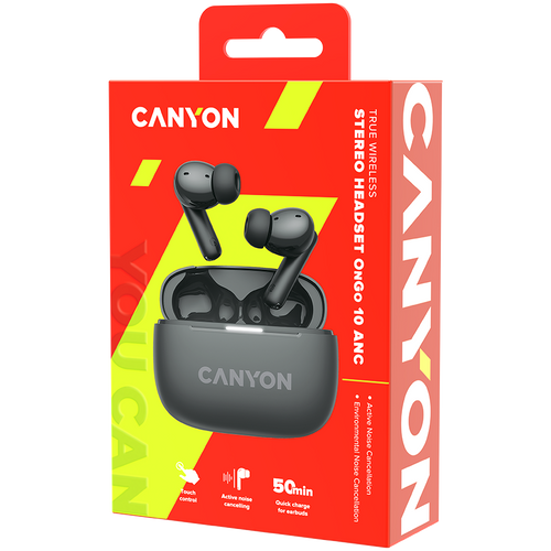 CANYON OnGo TWS-10 ANC+ENC, Bluetooth Headset, microphone, BT v5.3 BT8922F, Frequence Response:20Hz-20kHz, battery Earbud 40mAh*2+Charging case 500mAH, type-C cable length 24cm,size 63.97*47.47*26.5mm 42.5g, Dark Grey