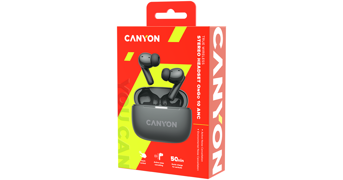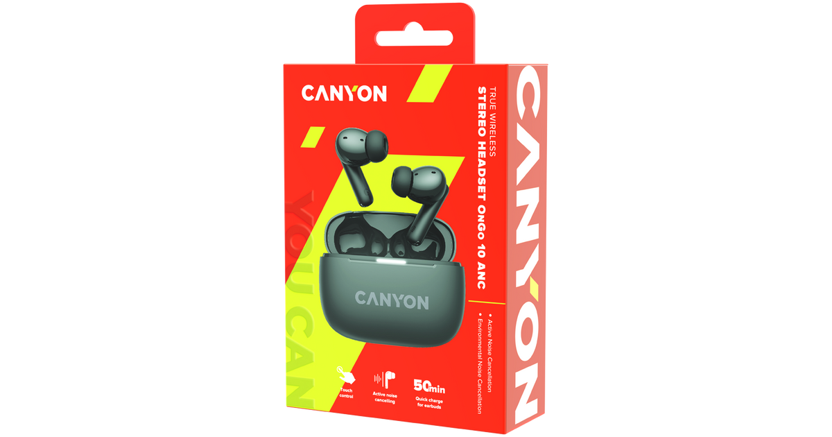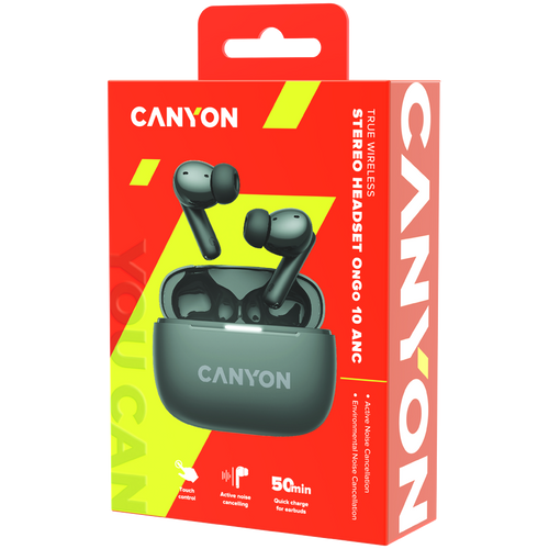 CANYON OnGo TWS-10 ANC+ENC, Bluetooth Headset, microphone, BT v5.3 BT8922F, Frequence Response:20Hz-20kHz, battery Earbud 40mAh*2+Charging case 500mAH, type-C cable length 24cm,siz...