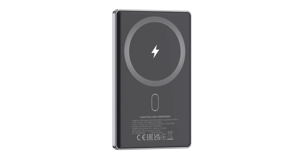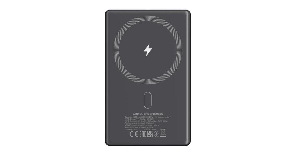 Canyon Powerbank Ontower 505 Slim Magsafe 5000 MAH PD20W graphite - Akupangad - Akud, patareid ja laadijad - Audio-video - MT Shop