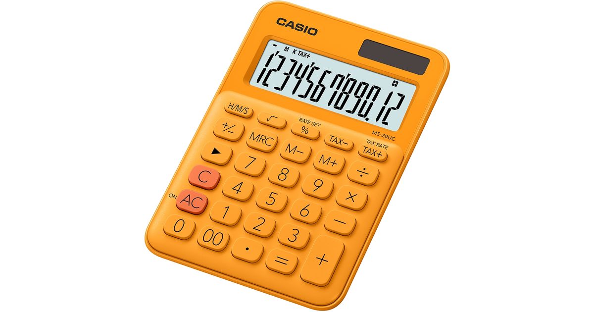 Casio MS-20UC-RG, Lauaarvuti, Tavaline kalkulaator, 12 numbrid, 1 joont, Aku/päikesepatarei, Oranž