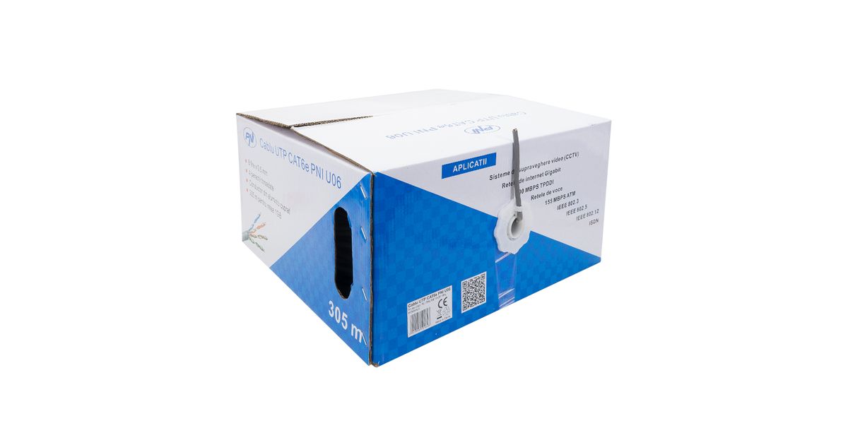 The UTP CAT6 PNI U06 cable also called network cable, ethernet, has as main destination the transfer of weak currents, data impulses, video signal, internet data, with a high precision due to the plastic separator positioned in the middle of the cable that reduces the interferences that can appear. |
