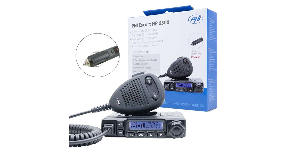 CB PNI Escort HP 6550 CB raadiojaam koos paigaldatud PNI ECH01-ga, multistandardne, 4W, AM-FM, 12V, ASQ, kajarežiimiga