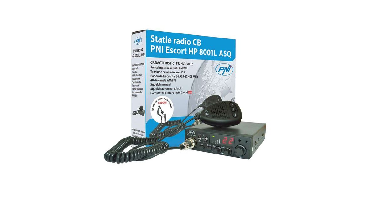 CB PNI ESCORT HP 8001L ASQ raadiojaama komplekt + HS81 kõrvaklapid + CB PNI ML160 magnetiga antenn