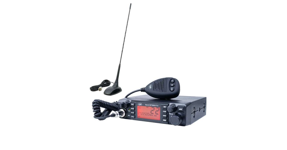 CB PNI ESCORT HP 9001 PRO ASQ raadiojaamakomplekt reguleeritav, AM-FM, 12V, 4W + CB PNI Extra 48 antenn koos magnetiga, 45 cm, 150W, SWR 1.0