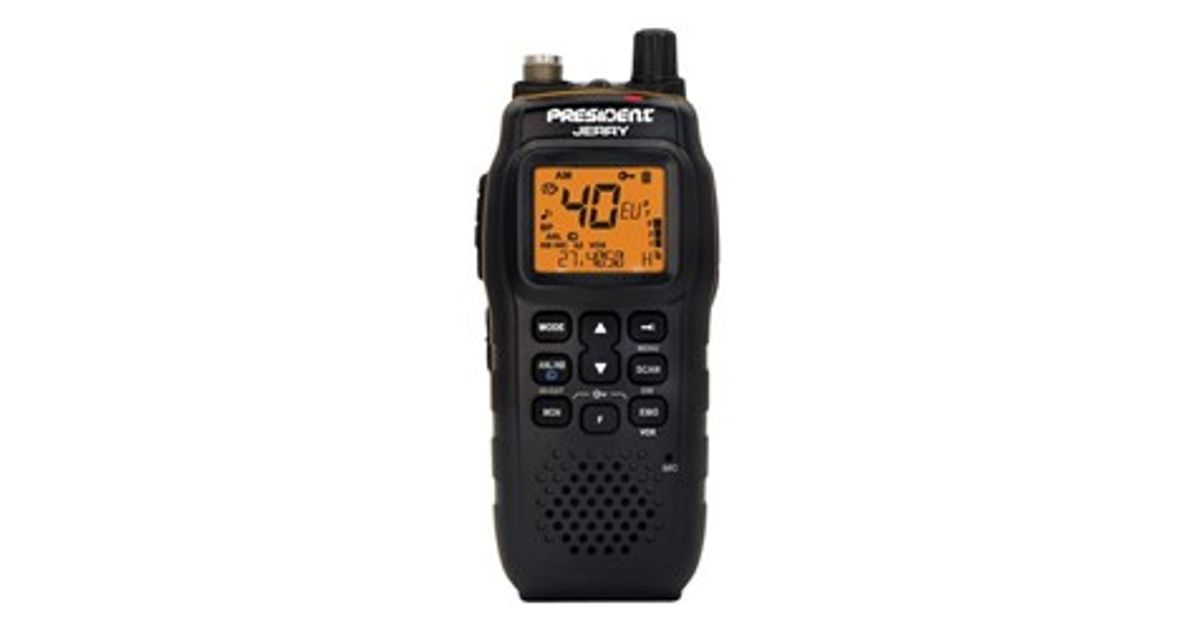 CB raadio PRESIDENT JERRY (saatja võimsus - 4W, toiteallikas - 7,4/13,2V, kanalite number - 40, aktiivne mürasummutus - jah, 66,5x37x152 mm)