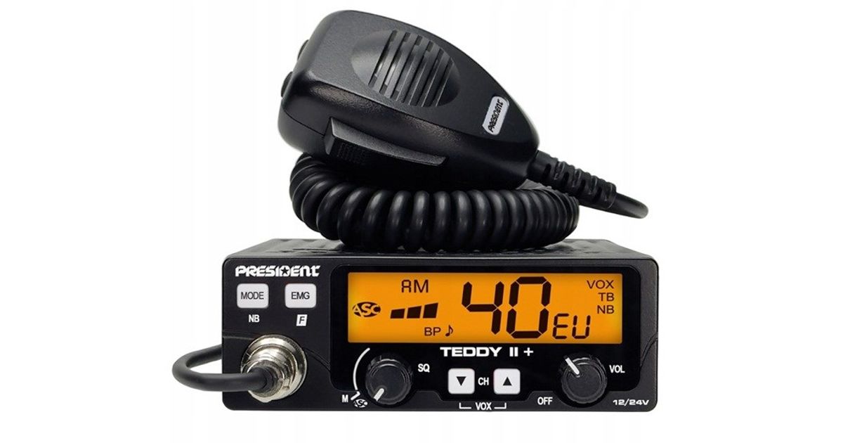 CB Radio PRESIDENT Teddy II+ (transmitter power - 4W, power supply voltage - 12/24V, channel count - 40, noise blocker - yes, 125x125x45 mm)