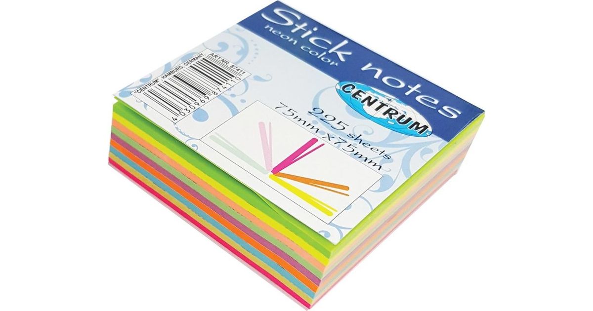 Center Self-adhesive notes Center 75x75mm 225 NOENOWY card 9 colors after 25 sheets 87411