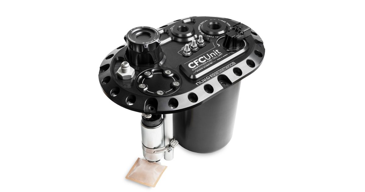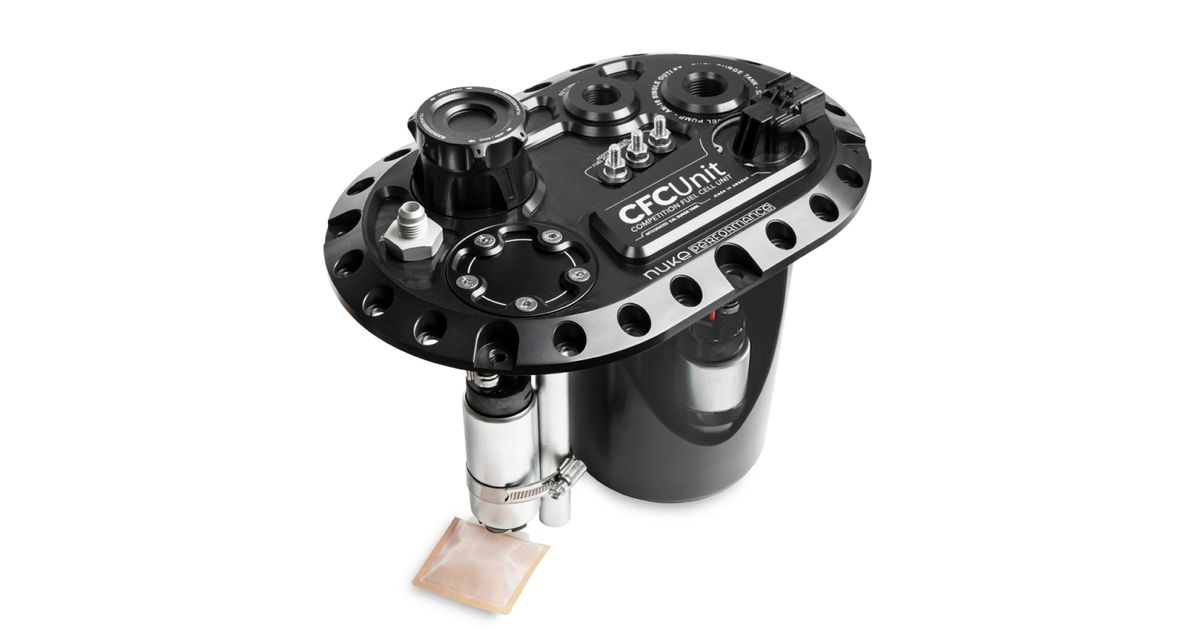The Nuke Performance CFC Unit for brushless fuel pumps - Competition Fuel Cell Unit, with integrated fuel surge tank is designed to utilize one or two brushless fuel pumps within the integrated surge tank. This lets you choose a smaller pickup fuel pump with fewer amps, less heat, and lower fuel temperature as a result.