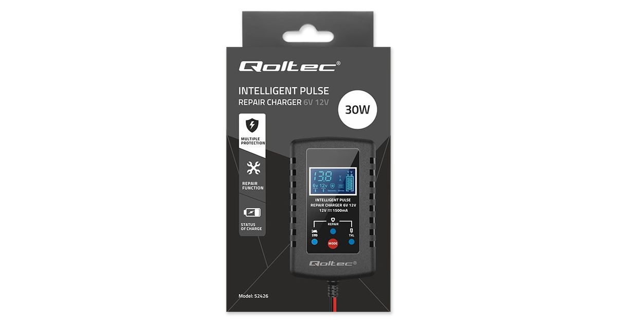 Proper selection of the right battery charger is extremely important if you want your battery to serve you for a long time. The wrong charger can result not only in extended charging times, but also a significant reduction in the life of the battery. The Qoltec charger is a microprocessor-based precision charging, one charger for lead-acid, AGM, GEL and STD batteries - ideal for motorcycles, ATVs, lawnmowers, electric toys or emergency power systems.