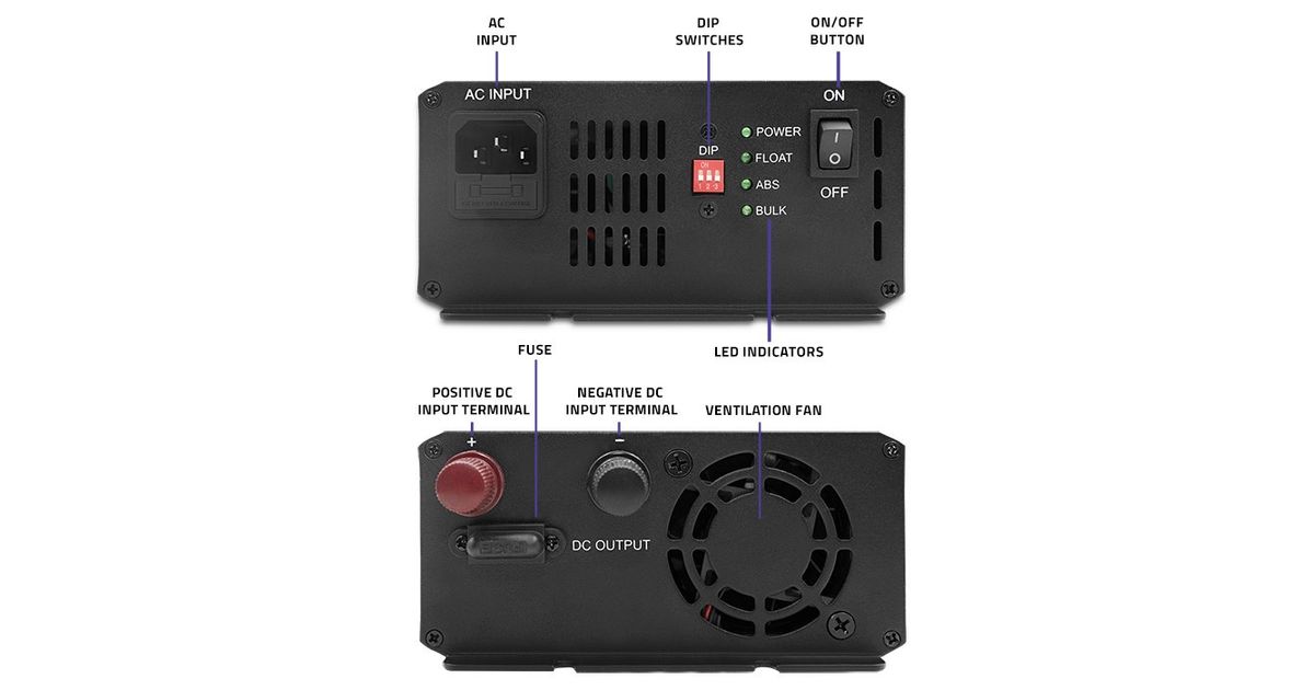 - Features short-circuit, reverse polarity, overcharging and overheating protection,