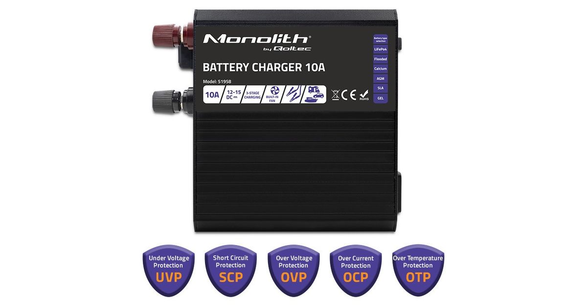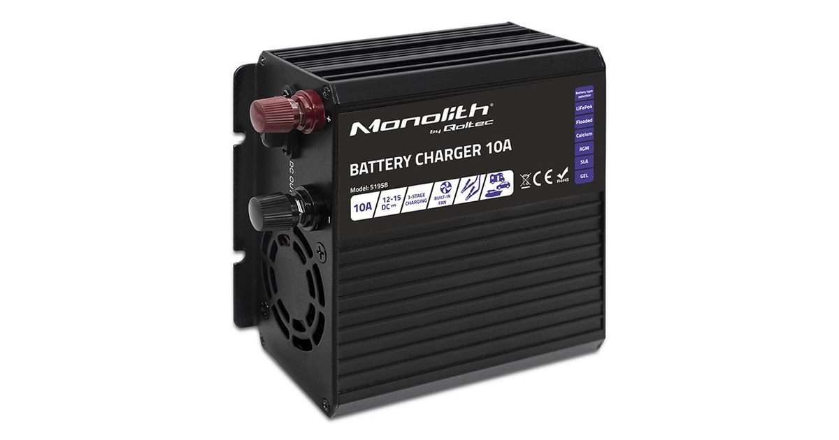 The Monolith charger is designed to work seamlessly with a wide range of different types of batteries, including AGM, GEL, calcium, SLA and LiFePO4, providing them with a stable and safe energy source and a guarantee that the battery will remain in good condition throughout its lifetime.