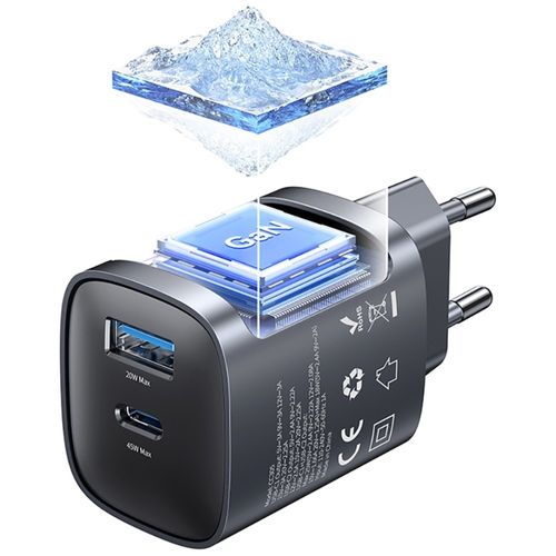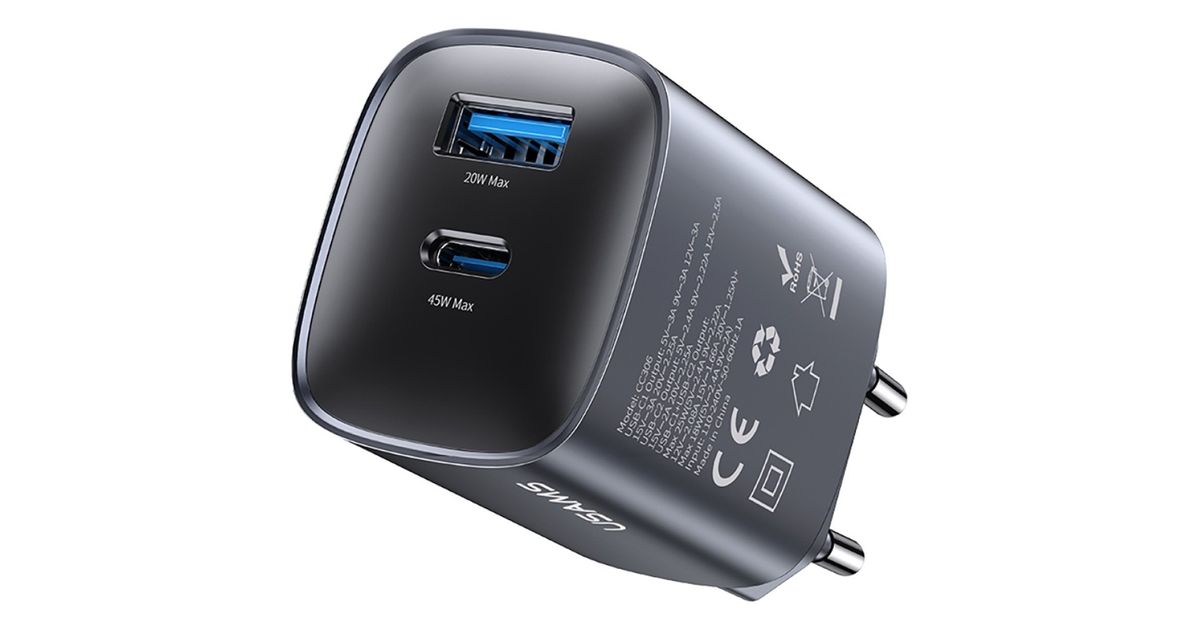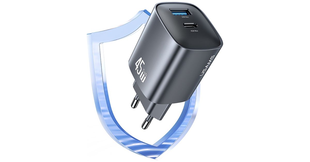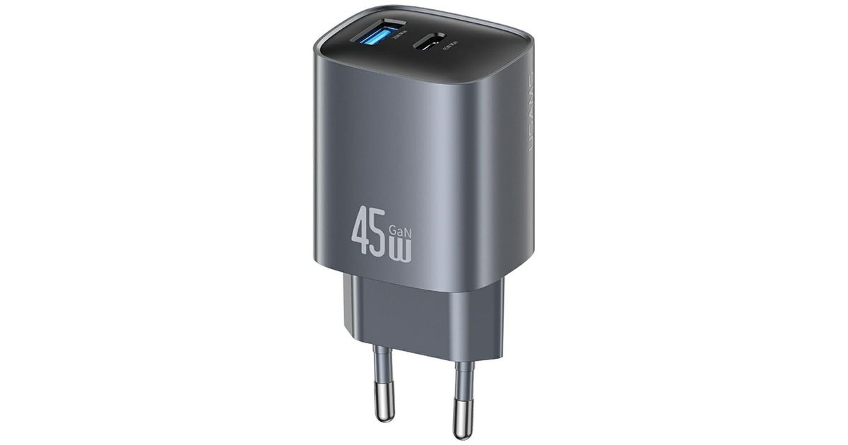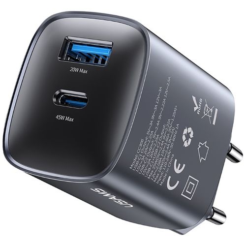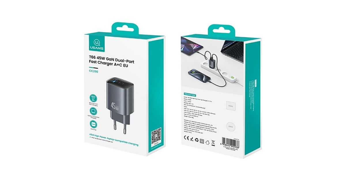 The USAMS CC290 T66 is a compact wall charger with GaN technology, delivering a total output of 45W and featuring two universal outputs: USB-C and USB-A. Thanks to GaN, it's smaller, cooler, and more efficient than traditional power supplies, while also providing fast charging for modern devices.