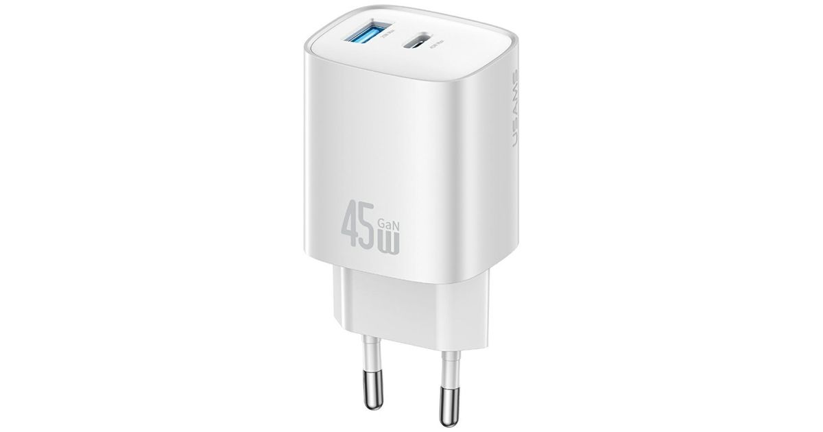 The USAMS CC290 T66 is a compact wall charger with GaN technology, delivering a total output of 45W and featuring two universal outputs: USB-C and USB-A. Thanks to GaN, it's smaller, cooler, and more efficient than traditional power supplies, while also providing fast charging for modern devices.
