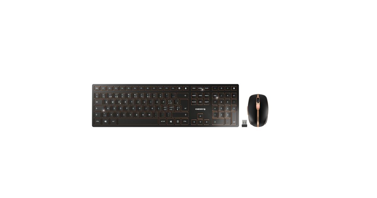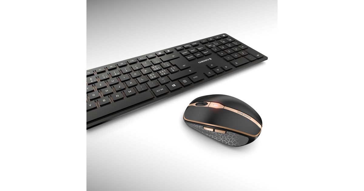 CHERRY DW 9100 SLIM, RF juhtmeta ühendus + Bluetooth, QWERTZ, Must, Hiir kaasa arvatud