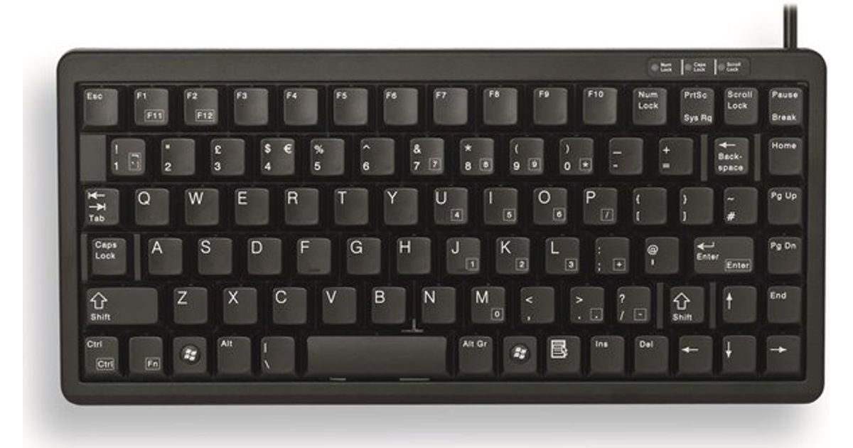 CHERRY G84-4100, Mini, Juhtmega ühendatud, USB, QWERTY, Must