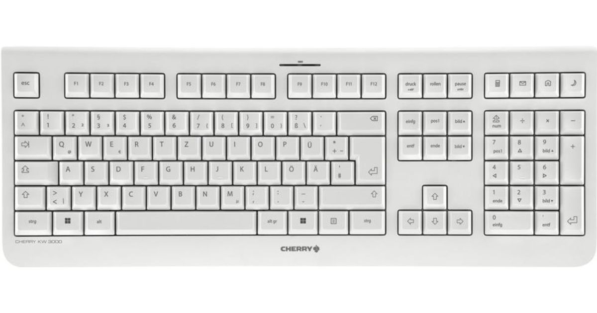 Cherry KW 3000 Kabellose Tastatur weiß - Full-Size-Layout inkl. Cursor- und Nummernblock / Flache - kabellose Tastatur / Bis zu 10 Millionen Tastenbetätigungen (JK-3000DE-0)