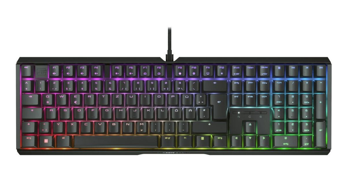 CHERRY XTRFY MX 3.1 - Tastatur - 100% - full size - Hintergrundbeleuchtung - USB-C - QWERTZ - Deutsch - Tastenschalter: CHERRY MX2A Red - Schwarz (G80-3890LJADE-2)