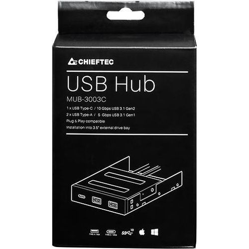 Chieftec MUB-3003, USB 3.2 Gen 2 (3.1 Gen 2) Type-A, USB 3.2 Gen 1 (3.1 Gen 1) Type-A, USB 3.2 Gen 2 (3.1 Gen 2) Type-C, 10000 Mbit/s, Must, Metall, Plast, 102 mm