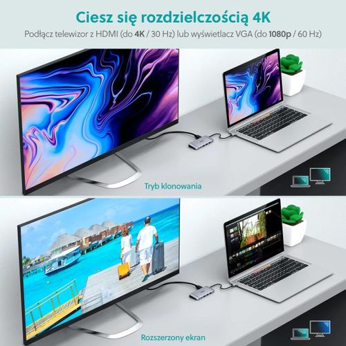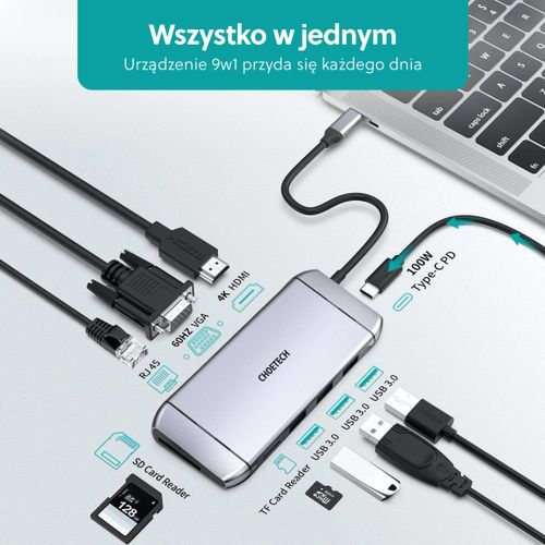 Choetech HUB-M15, USB 3.2 Gen 1 (3.1 Gen 1) Type-C, HDMI, RJ-45, USB 3.2 Gen 1 (3.1 Gen 1) Type-A, USB tüüp-C, VGA, MicroSD (TransFlash), SD, 5000 Mbit/s, 60 Hz, 3840 x 2160