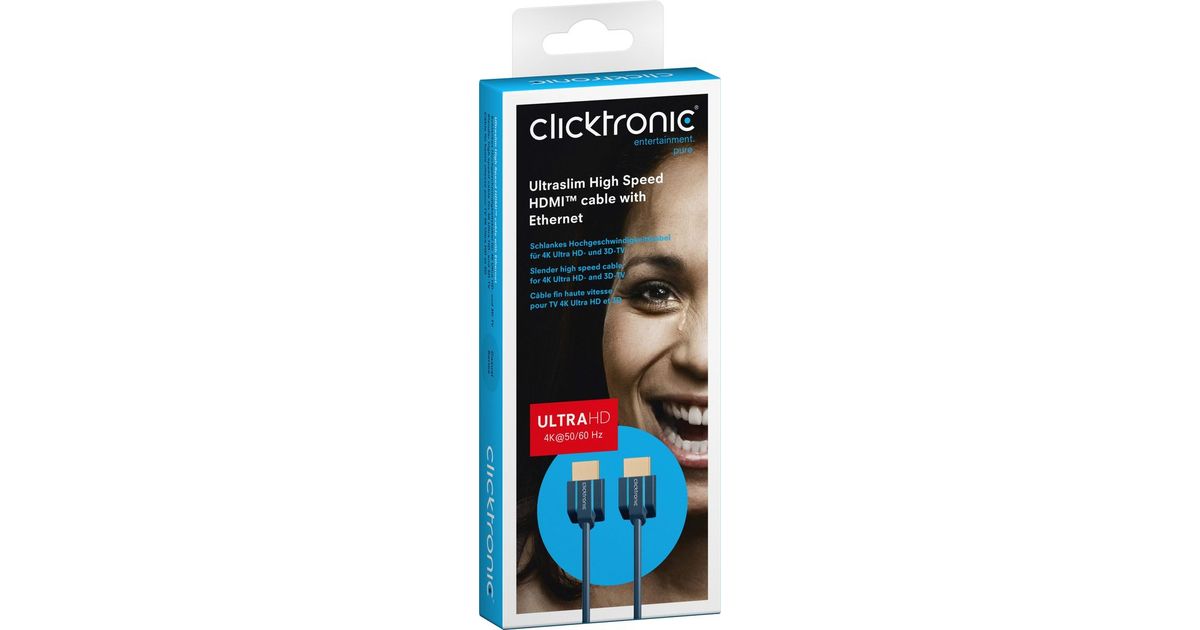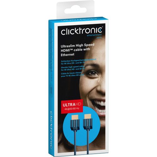 ClickTronic 70704, 2 m, HDMI tüüp A (Standard), HDMI tüüp A (Standard), 3840 x 2160 pikslit, 3D-ühilduvus, Sinine