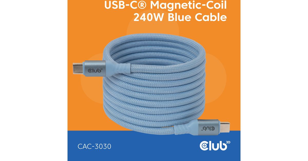 Club 3D USB-C Magnetic-Coil 240W PD3.1 Blue Cable Fast Charging - Kabel - Digital/Daten (CAC-3030)