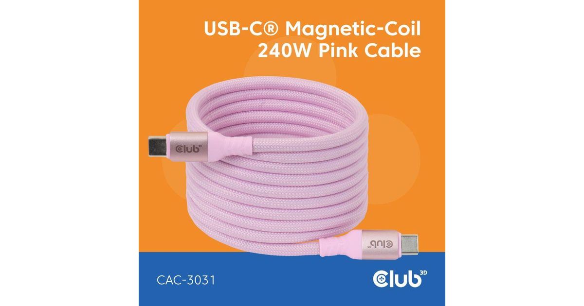 Club 3D USB-C Magnetic-Coil 240W PD3.1 Pink Cable Fast Charging - Kabel - Digital/Daten (CAC-3031)