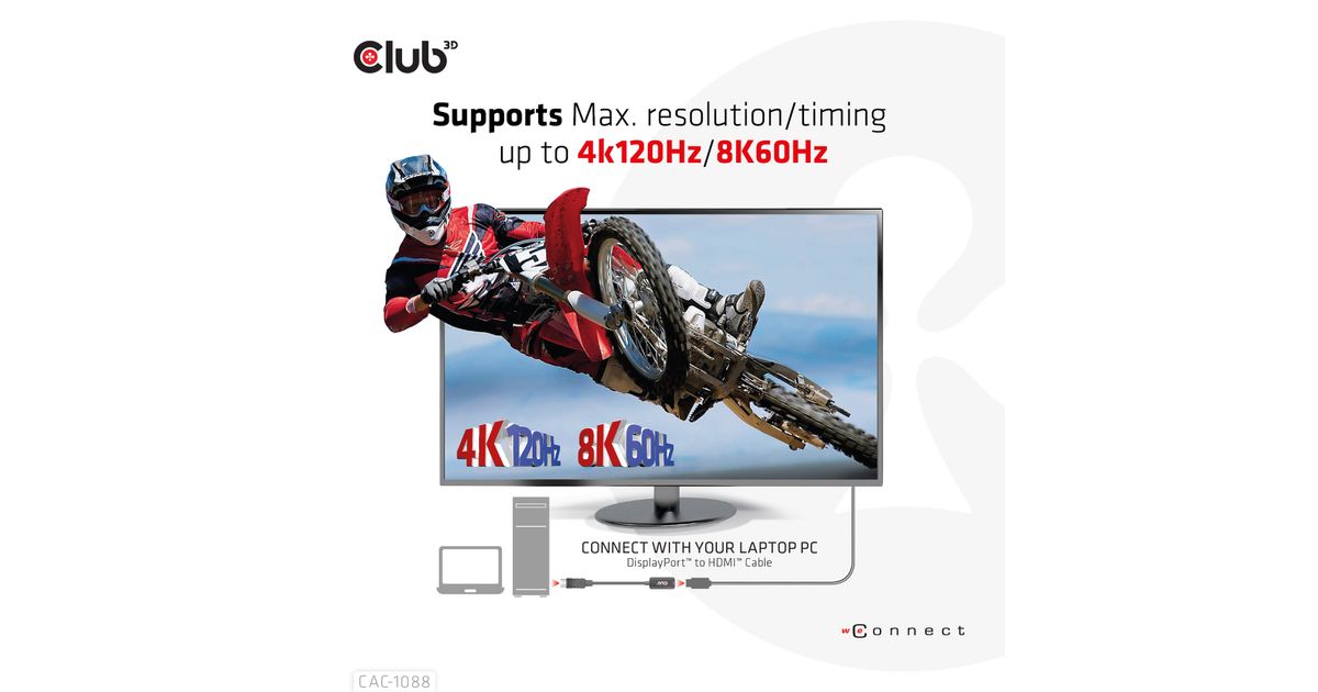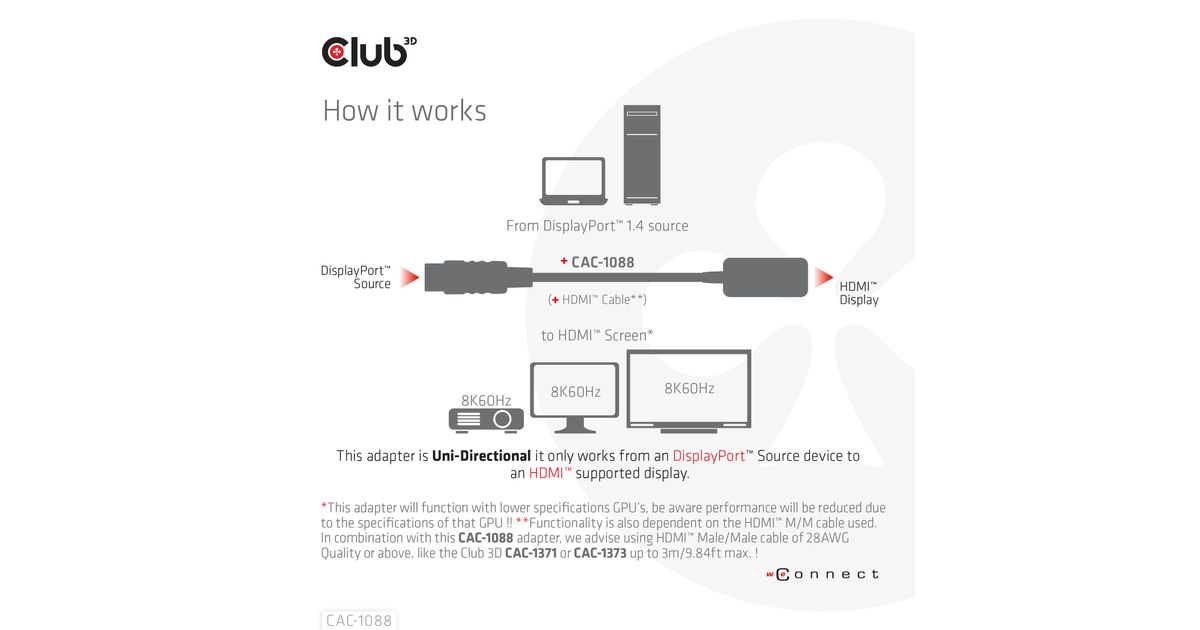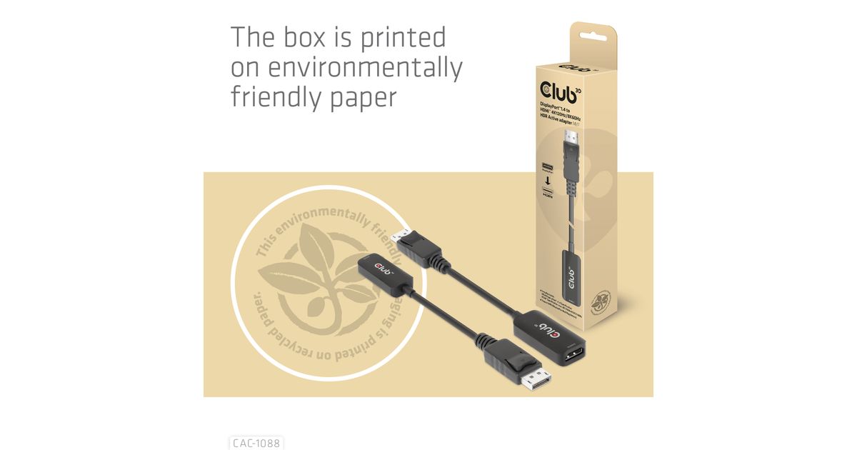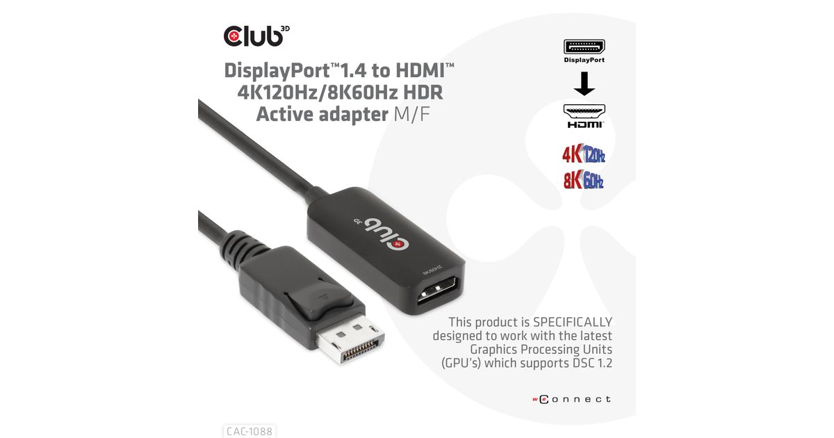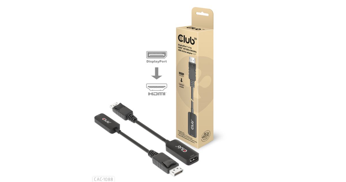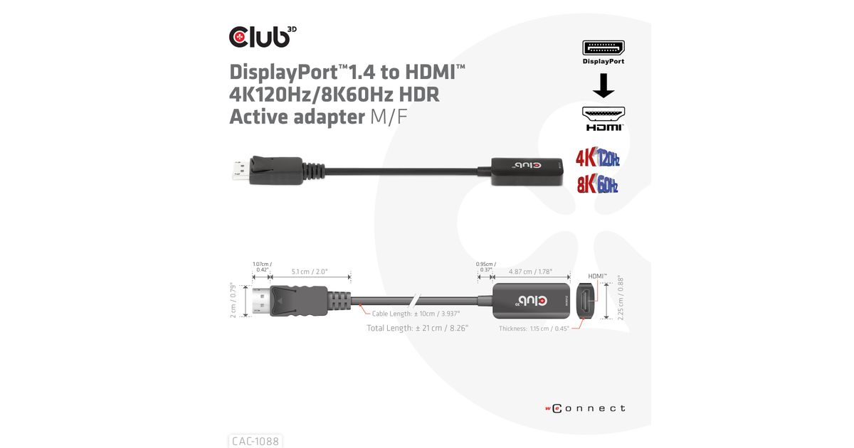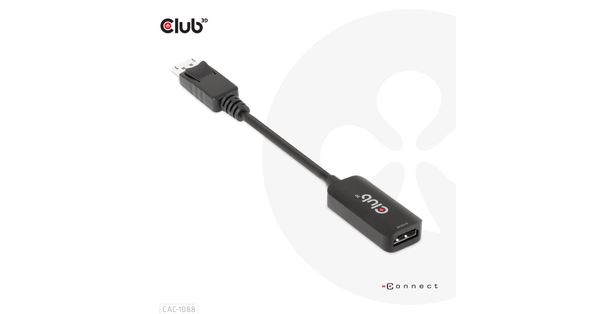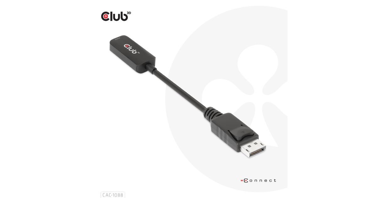 CLUB3D CAC-1088, 0,21 m, DisplayPort, HDMI, Meessoost, Naissoost, Sirge