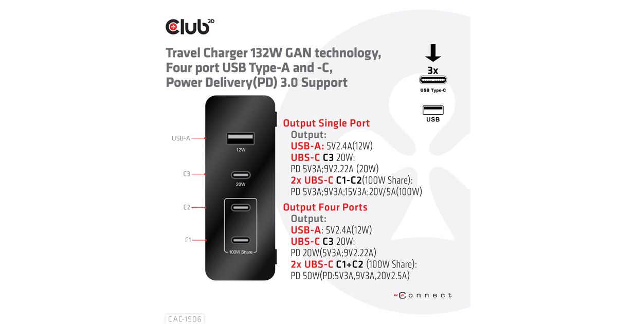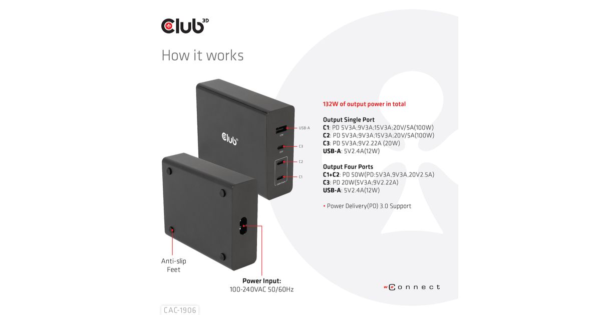 CLUB3D CAC-1906, 132 W