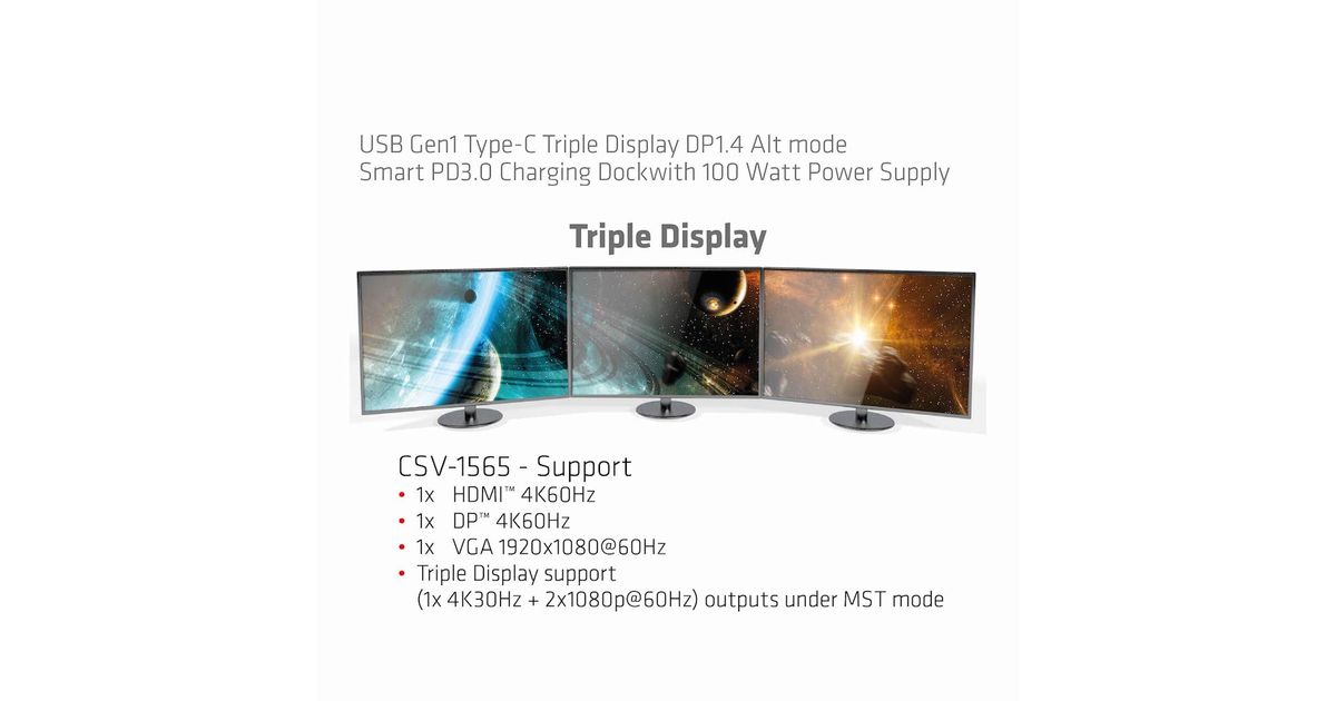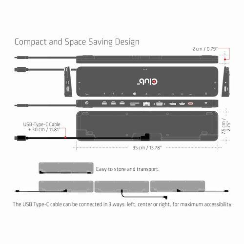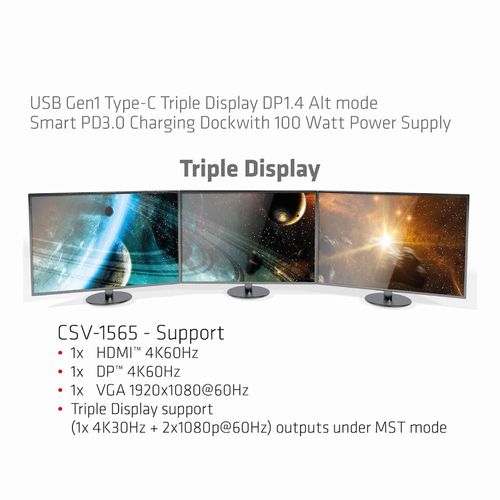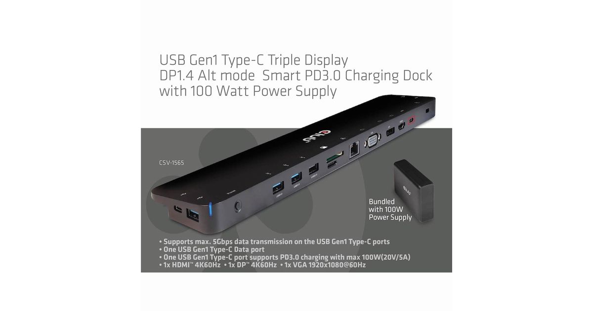 CLUB3D CSV-1565, Dokkimine, USB 3.2 Gen 1 (3.1 Gen 1) Type-C, Must