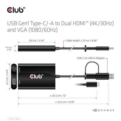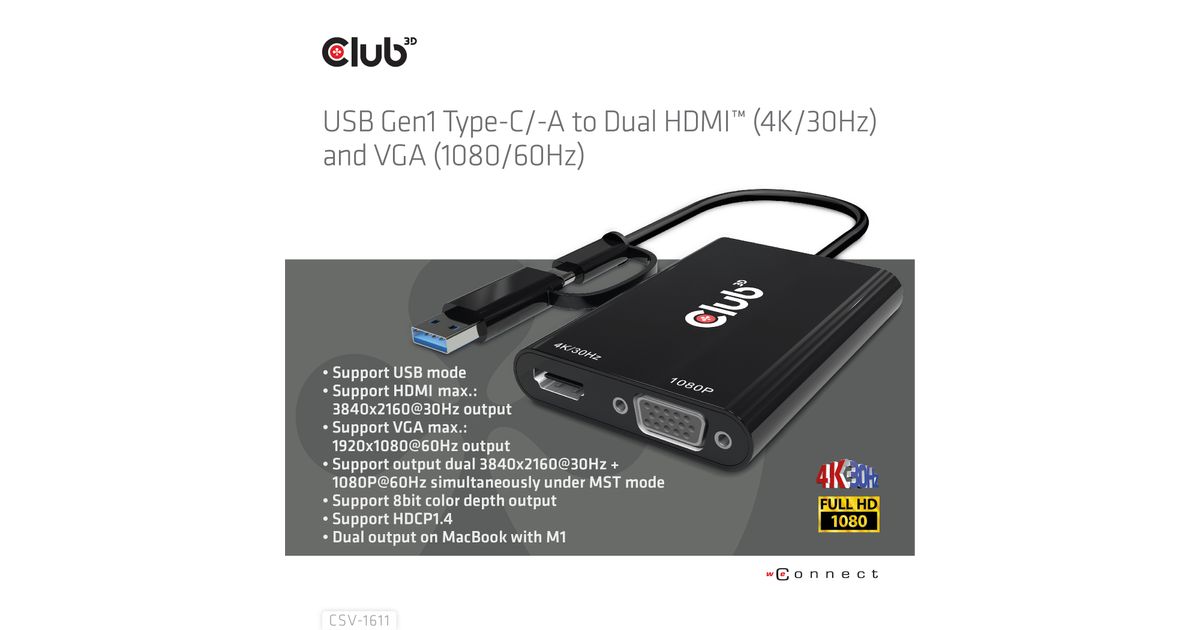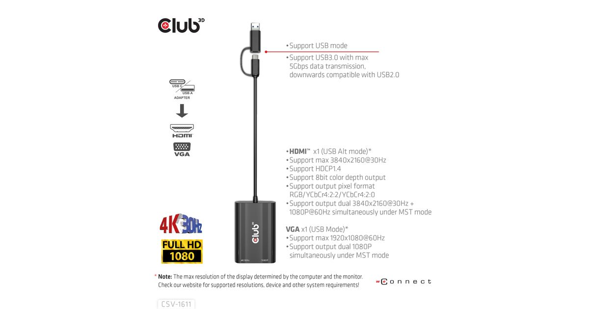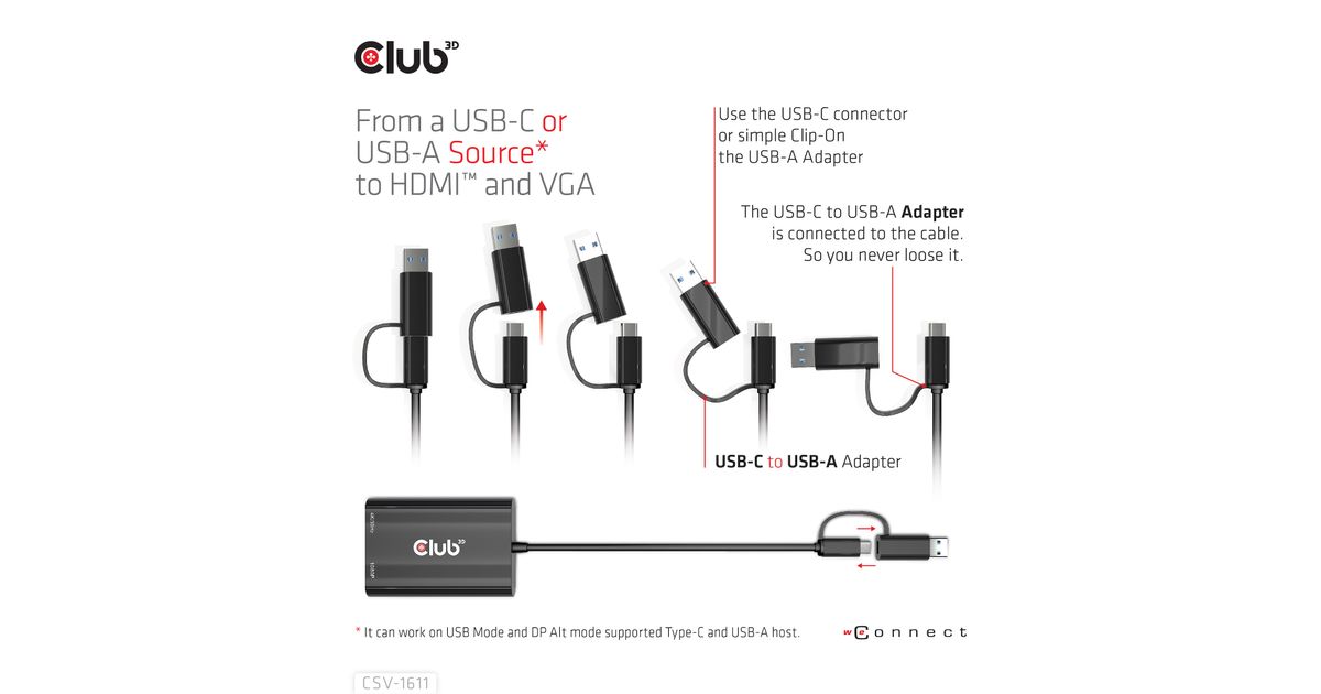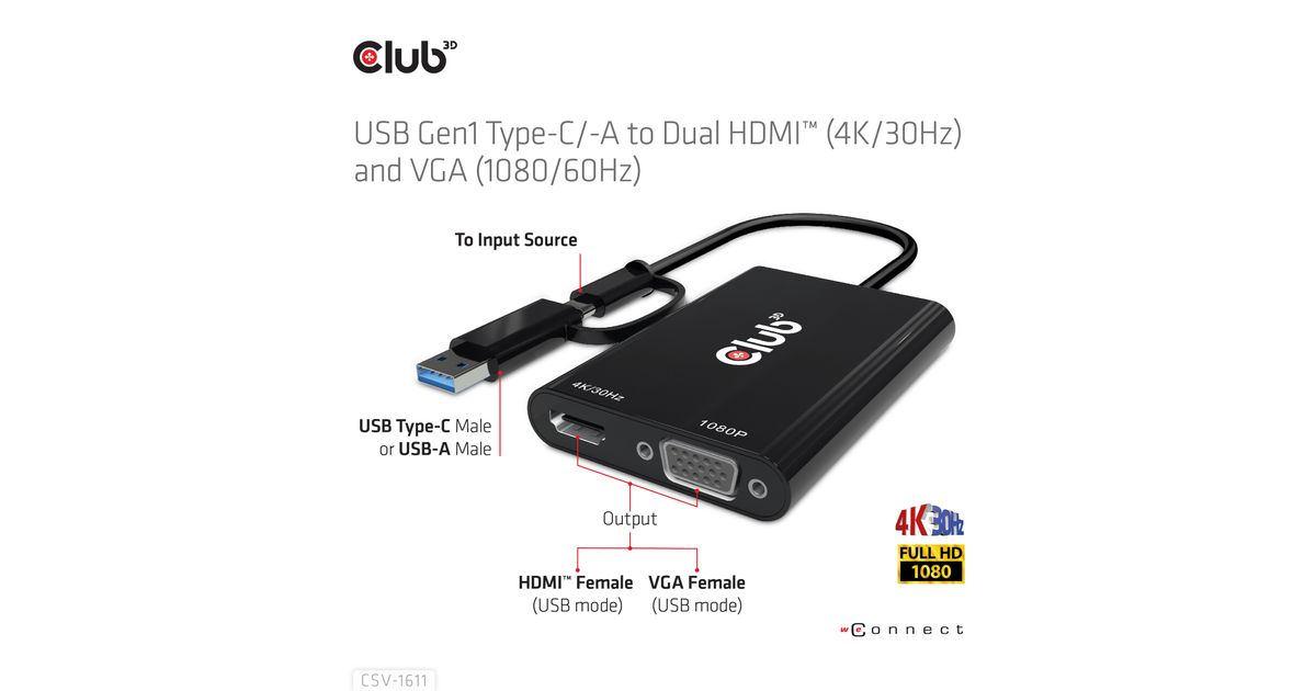 CLUB3D CSV-1611, USB 2.0 Micro-A