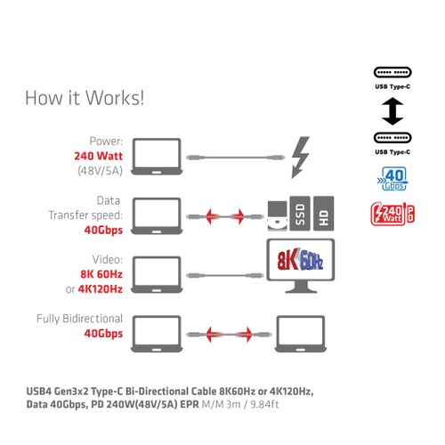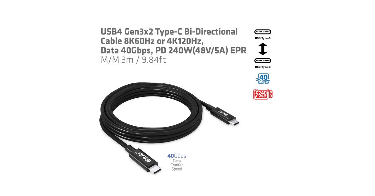 Das Club 3D CAC-1579 USB4 Gen3x2 Type-C Bi-Direktionale Kabel 8K60Hz oder