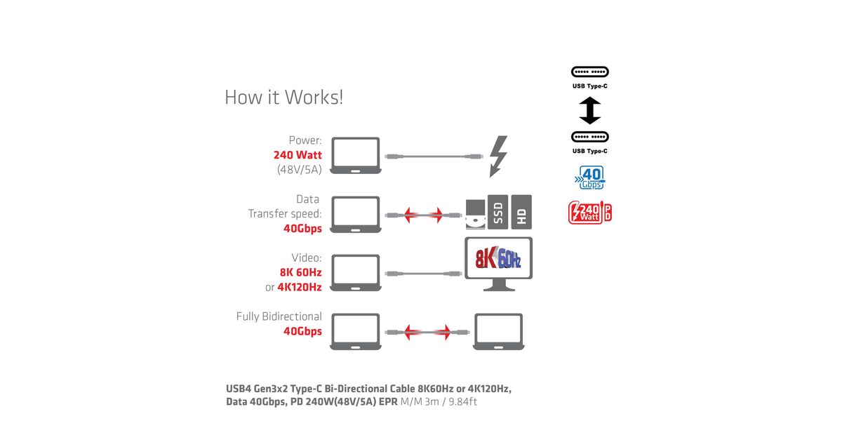 4K120Hz, Data 40Gbps, PD 240W(48V/5A) EPR St/St 3m verbindet Ihr Notebook,