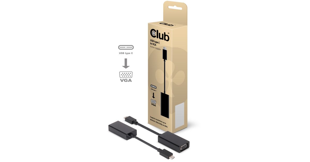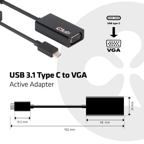 CLUB3D USB 3.1 Type C to VGA Active Adapter, USB C, VGA, 0,15 m, Must